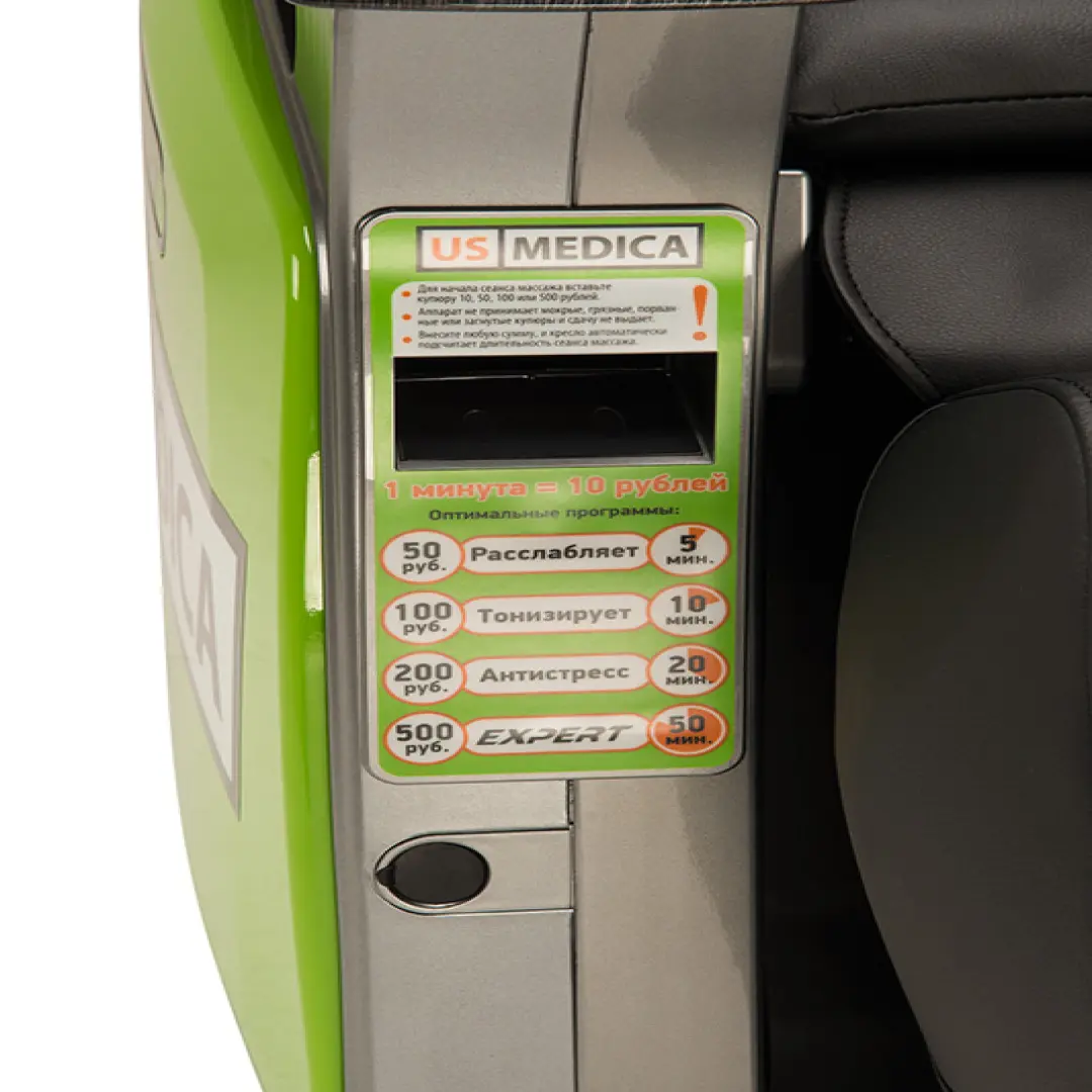 Массажное кресло US Medica Vending сочетает в себе прочность и яркий дизайн,оно является удачным вложением денег, которое принесет хорошие дивиденды своему владельцу.